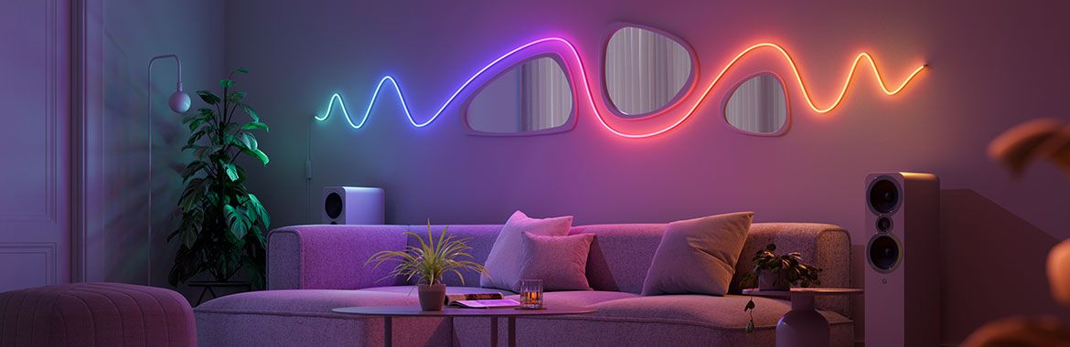 Multicolor Rope Light to ultraelastyczna 5-metrowa taśma LED, którą możemy wyginać w abstrakcyjne wzory albo kontury ulubionych kształtów. Z 420 diodami i 70 niezależnymi strefami kolorów oferuje ponad 16 milionów barw i płynne gradienty. Obsługuje WiFi, Bluetooth oraz standard Matter, reaguje na muzykę, współpracuje z Apple Home, Alexą i Google. Idealna dla wszystkich chcących dodać na ścianie autorski, kolorowy, rysunek.